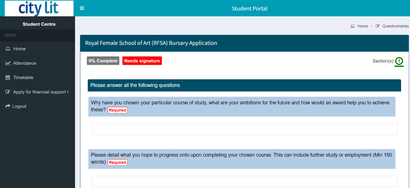 - Once you have signed and submitted the first part of your application, you need to provide information about the reasons you are applying for a RFSA bursary.