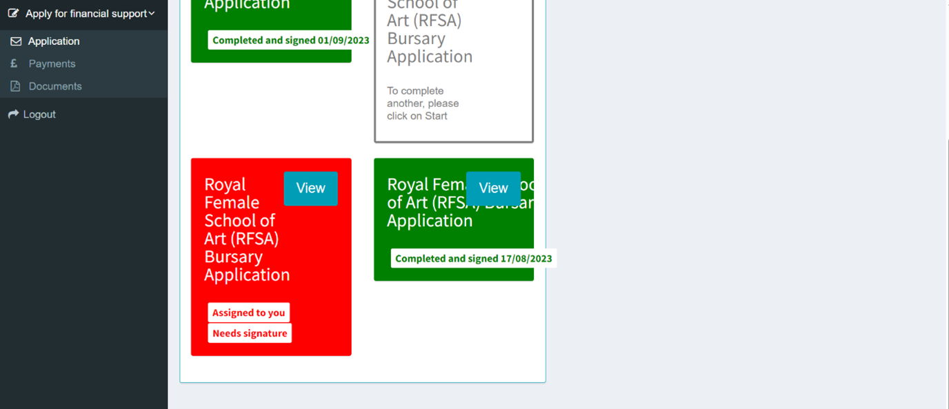 To apply for a Royal Female School of Art (RFSA) Bursary please visit the City Lit Pay My Student portal: